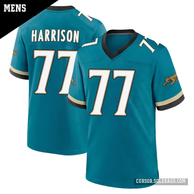 - Men's Jacksonville Jaguars #77 Anton Harrison Teal Game Prowler Throwback Jersey