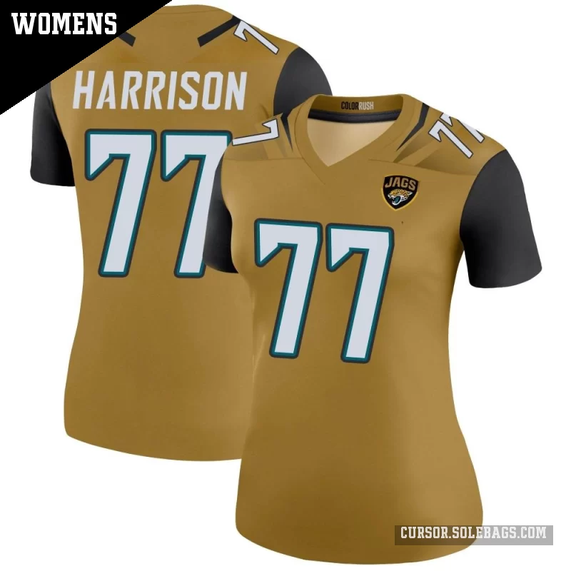 - Women's Jacksonville Jaguars #77 Anton Harrison Gold Legend Color Rush Bold Jersey