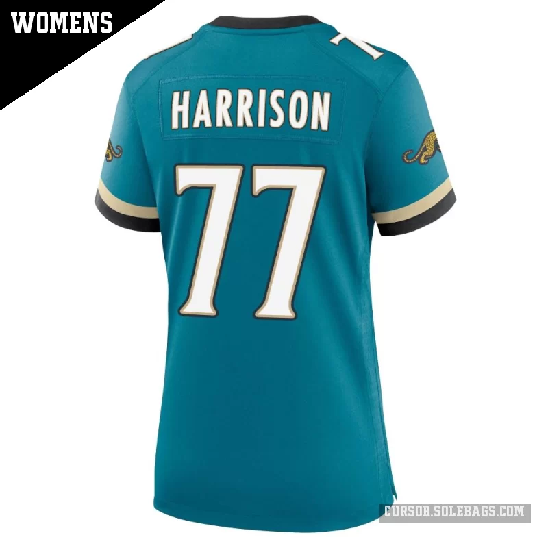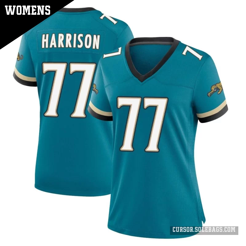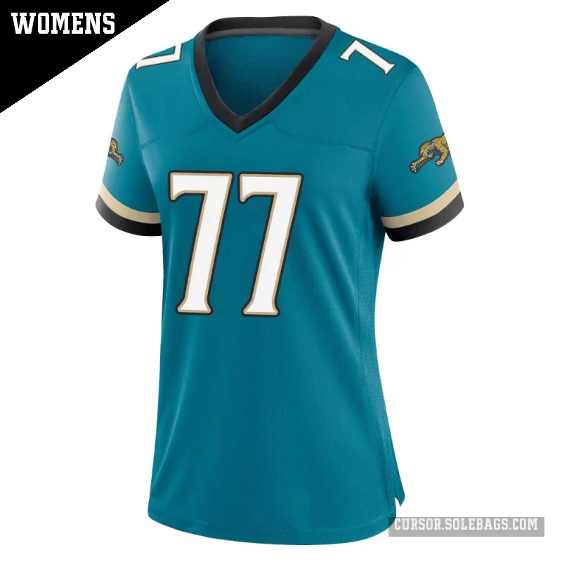 - Women's Jacksonville Jaguars #77 Anton Harrison Teal Game Prowler Throwback Jersey