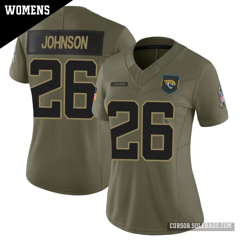 - Women's Jacksonville Jaguars #26 Antonio Johnson Olive Limited 2025 Salute to Service Jersey