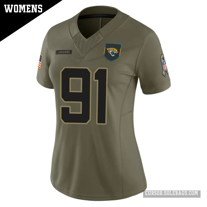 - Women's Jacksonville Jaguars #91 Arik Armstead Olive Limited 2025 Salute to Service Jersey