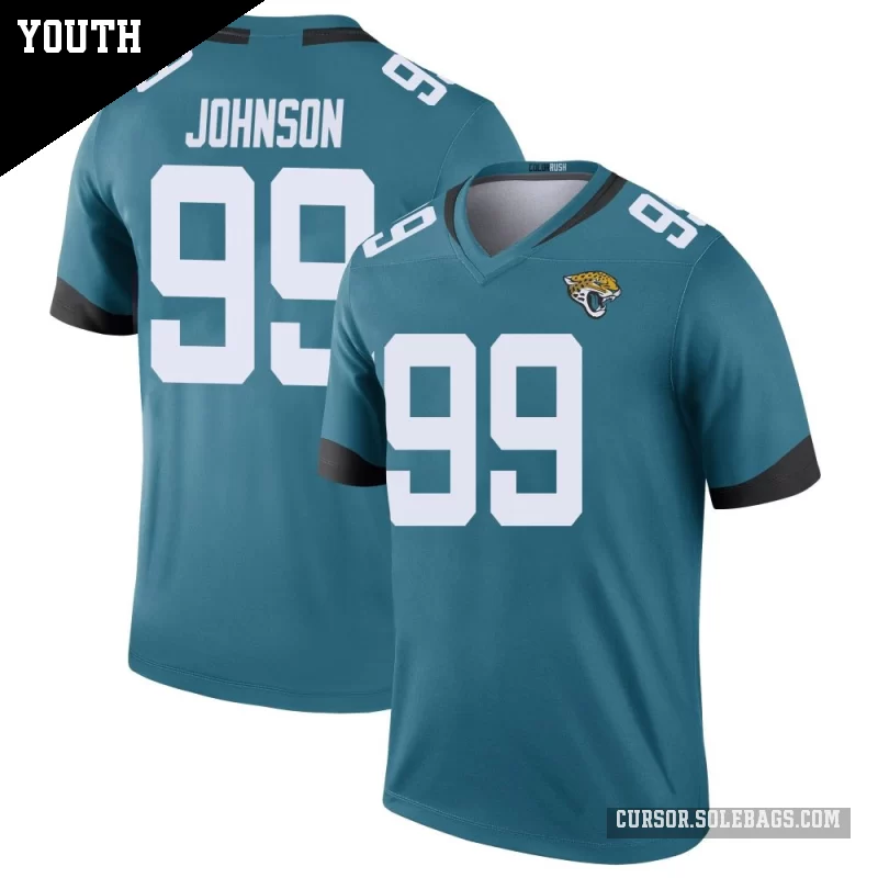 Give young fans a lightweight way to support the Jaguars with this Youth Jacksonville Jaguars #99 Austin Johnson Teal Legend Color Rush Jersey. Soft, easy to move in, and full of team pride, it's perfect for active kids on game day and beyond.