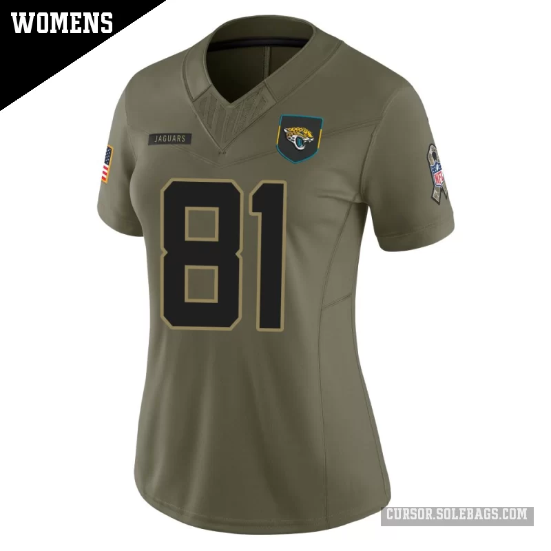 - Women's Jacksonville Jaguars #81 Austin Trammell Olive Limited 2025 Salute to Service Jersey