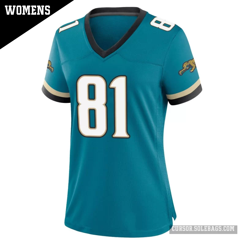 Bring true fan energy to every game with this Women's Jacksonville Jaguars #81 Austin Trammell Teal Game Prowler Throwback Jersey. Designed for comfort and a flattering silhouette, it's an easy go-to for any game-day outfit.