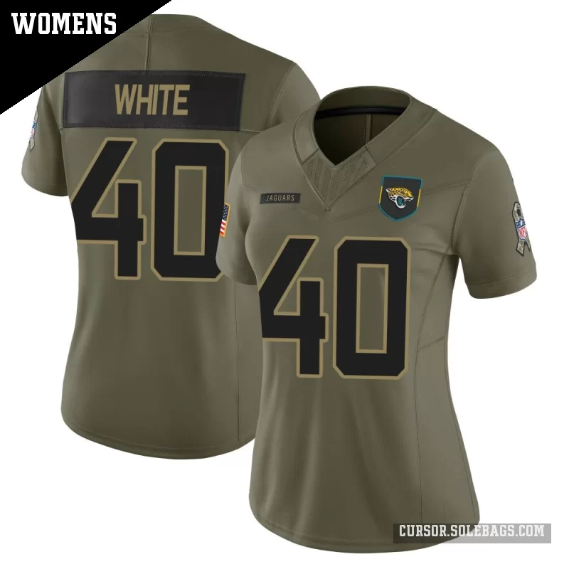 - Women's Jacksonville Jaguars #40 Aydan White Olive Limited 2025 Salute to Service Jersey