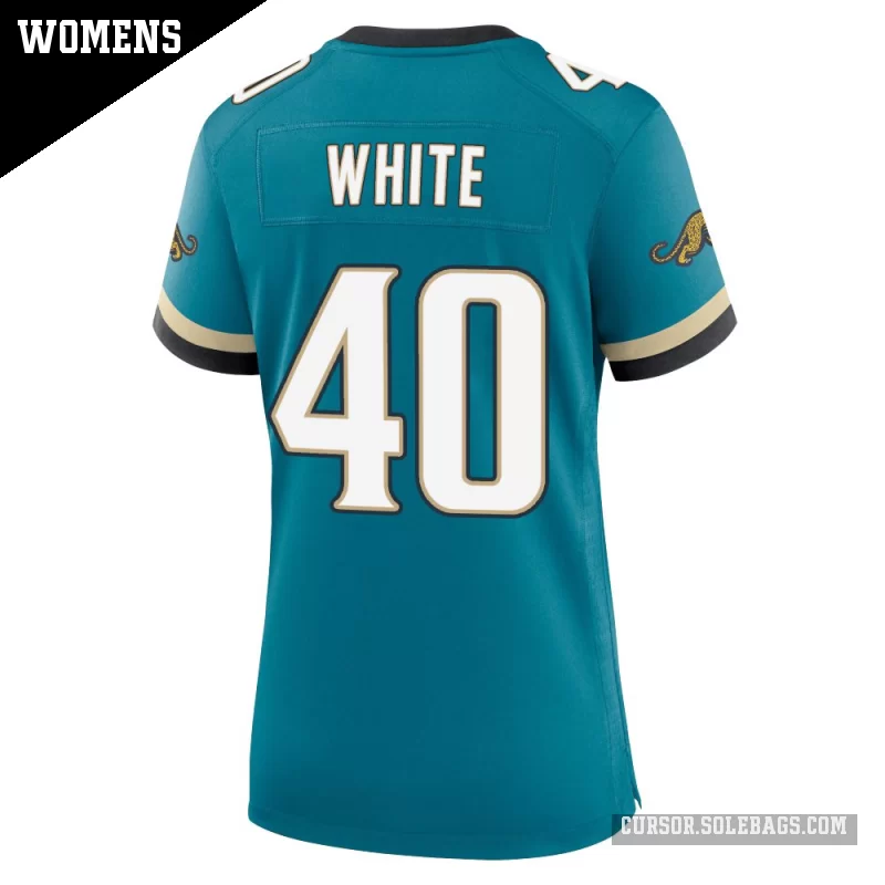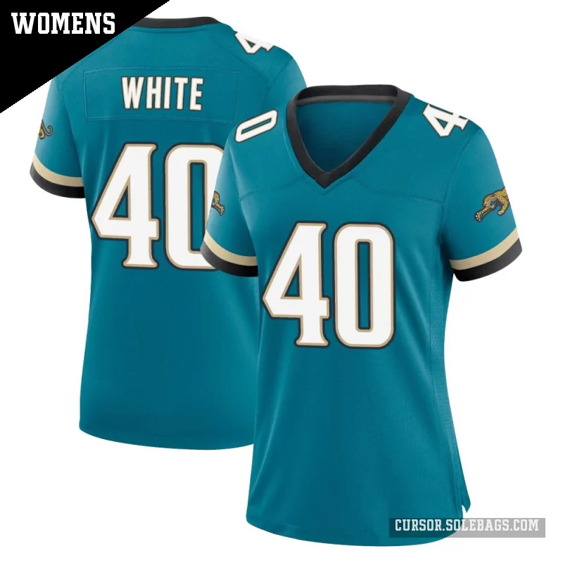 - Women's Jacksonville Jaguars #40 Aydan White Teal Game Prowler Throwback Jersey