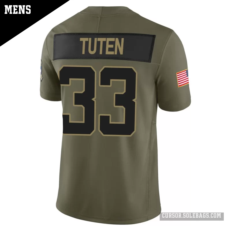 - Men's Jacksonville Jaguars #33 Bhayshul Tuten Olive Limited 2025 Salute to Service Jersey