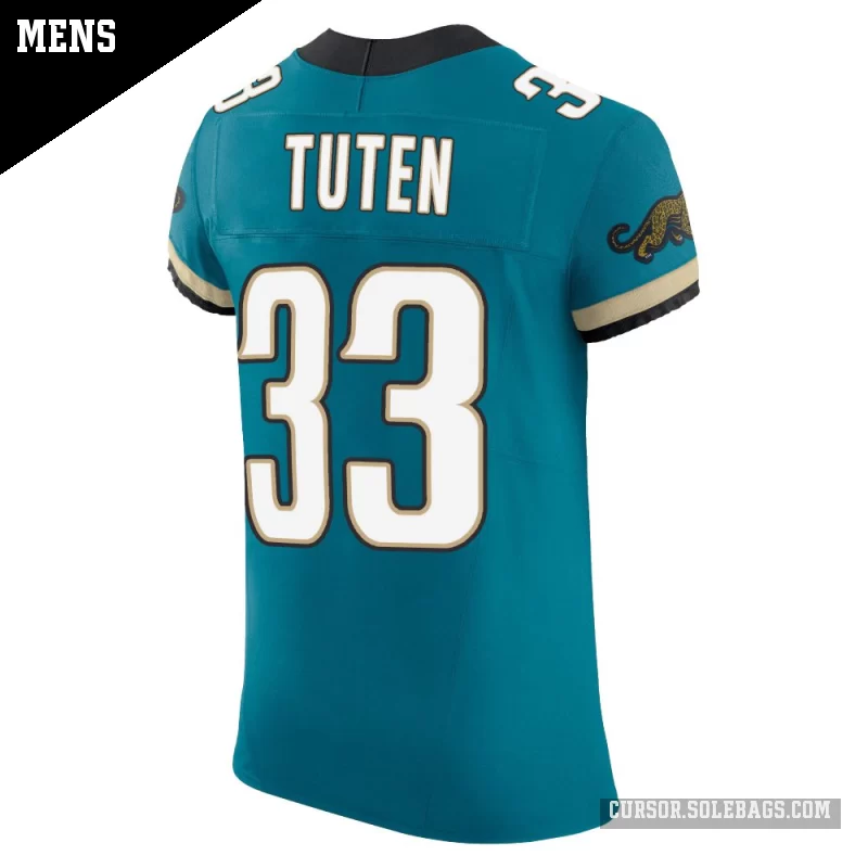 Experience game-day like the pros in this Men's Jacksonville Jaguars #33 Bhayshul Tuten Teal Elite Prowler Throwback Vapor F.U.S.E. Jersey. Built with top-tier materials, advanced ventilation, and authentic on-field details, it's the ultimate choice for dedicated collectors and superfans.