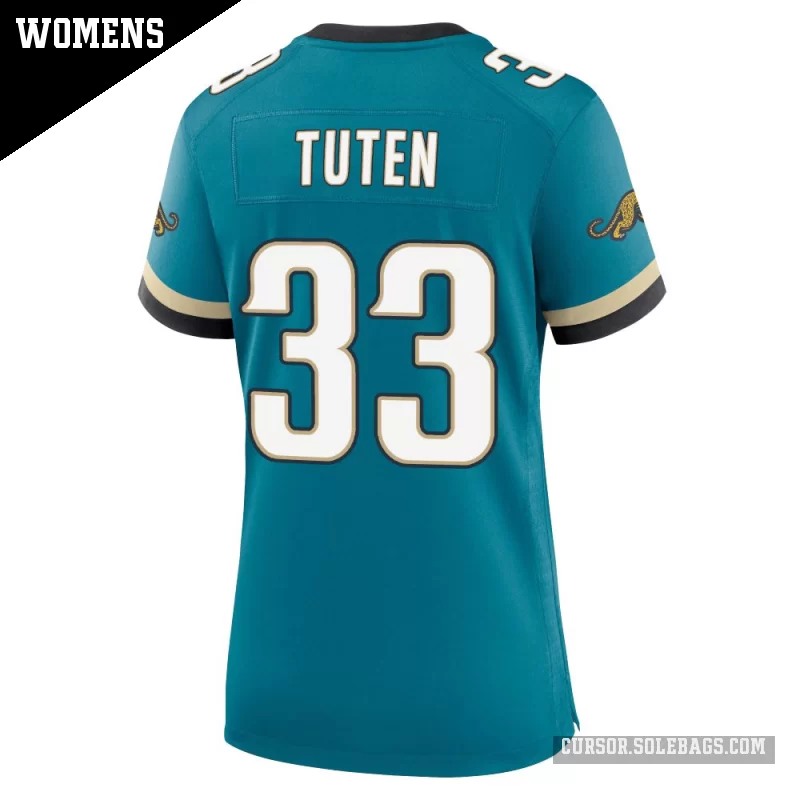 Bring true fan energy to every game with this Women's Jacksonville Jaguars #33 Bhayshul Tuten Teal Game Prowler Throwback Jersey. Designed for comfort and a flattering silhouette, it's an easy go-to for any game-day outfit.