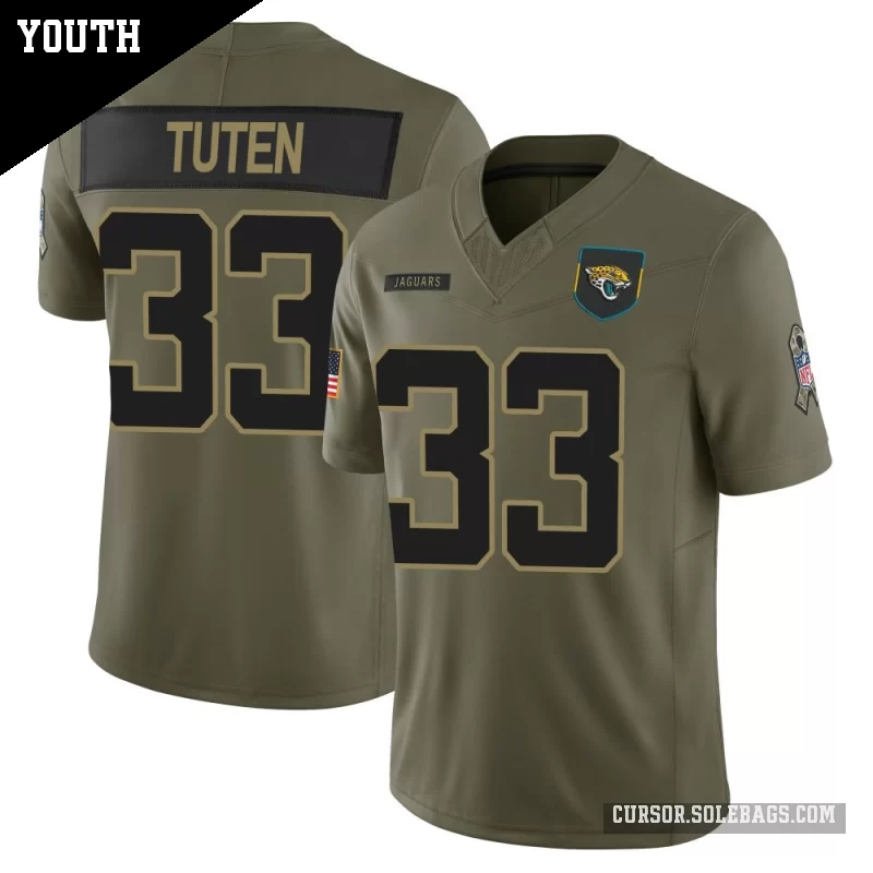 - Youth Jacksonville Jaguars #33 Bhayshul Tuten Olive Limited 2025 Salute to Service Jersey