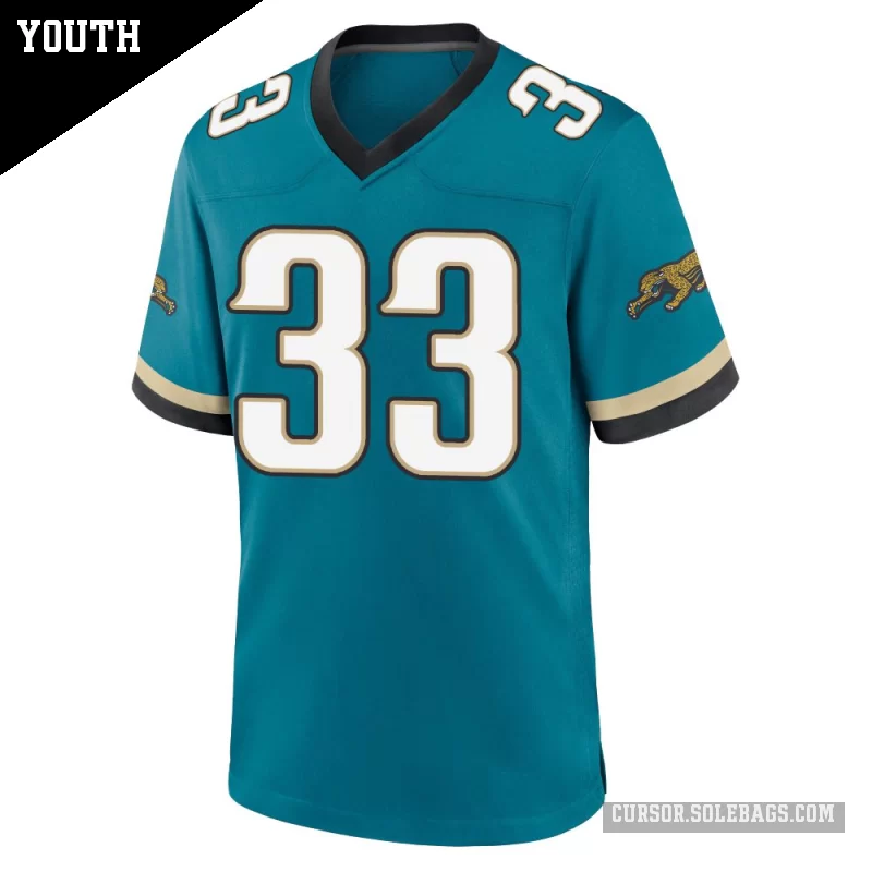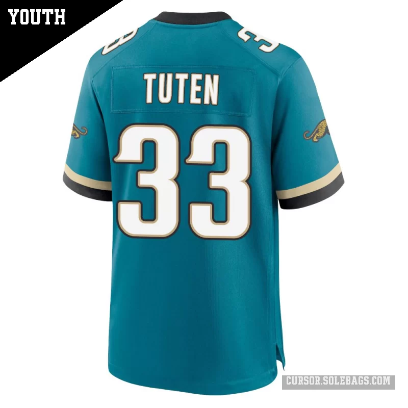 Let young fans feel part of the team with this Youth Jacksonville Jaguars #33 Bhayshul Tuten Teal Game Prowler Throwback Jersey. Durable, comfortable, and full of team spirit, it's great for school, backyard play, and every big game.