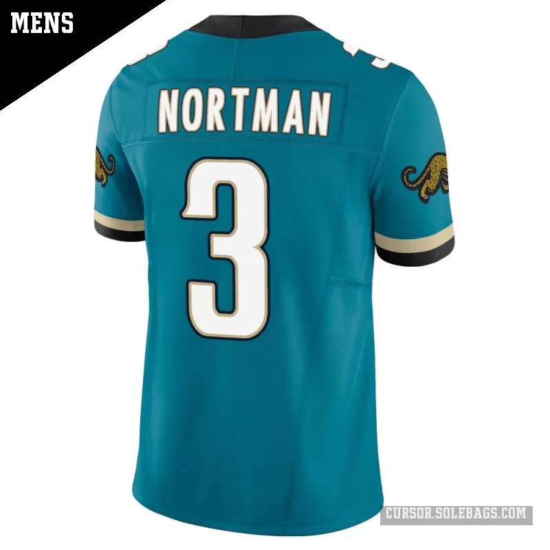 - Men's Jacksonville Jaguars #3 Brad Nortman Teal Limited Prowler Throwback Vapor F.U.S.E. Jersey