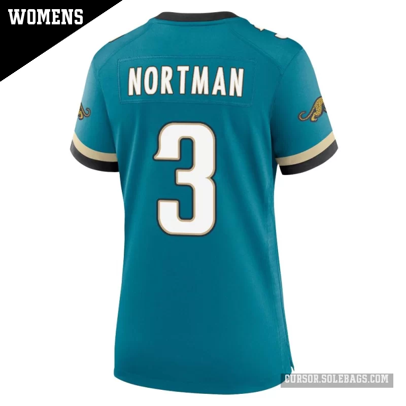 - Women's Jacksonville Jaguars #3 Brad Nortman Teal Game Prowler Throwback Jersey