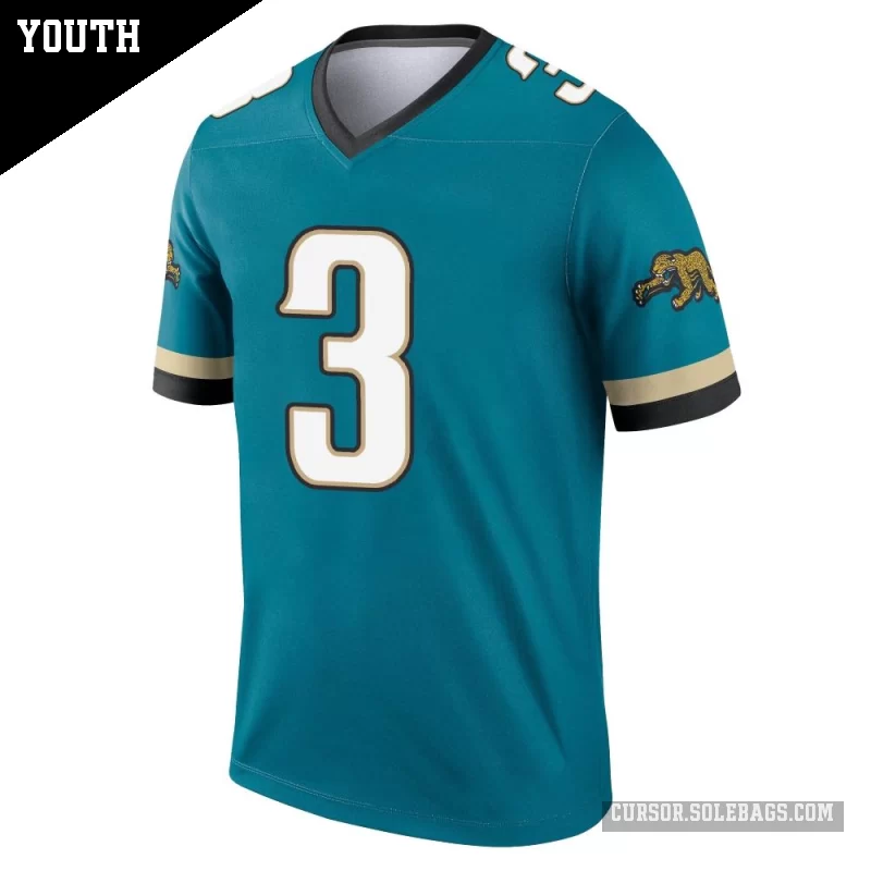 Give young fans a lightweight way to support the Jaguars with this Youth Jacksonville Jaguars #3 Brad Nortman Teal Legend Prowler Throwback Jersey. Soft, easy to move in, and full of team pride, it's perfect for active kids on game day and beyond.