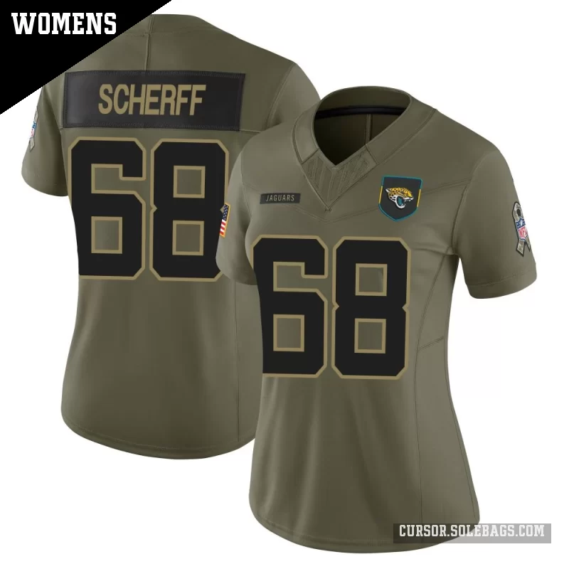 - Women's Jacksonville Jaguars #68 Brandon Scherff Olive Limited 2025 Salute to Service Jersey