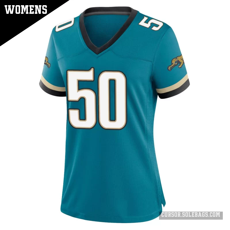 - Women's Jacksonville Jaguars #50 Branson Combs Teal Game Prowler Throwback Jersey