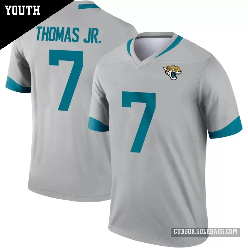 Give young fans a lightweight way to support the Jaguars with this Youth Jacksonville Jaguars #7 Brian Thomas Jr. Legend Silver Inverted Jersey. Soft, easy to move in, and full of team pride, it's perfect for active kids on game day and beyond.