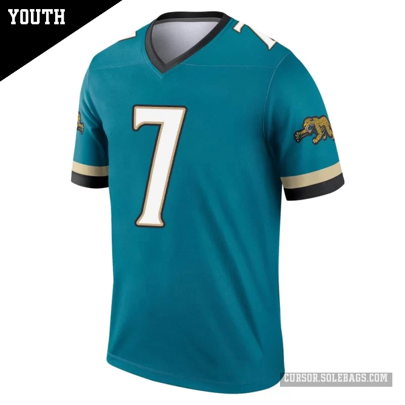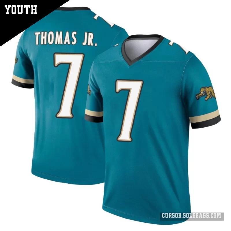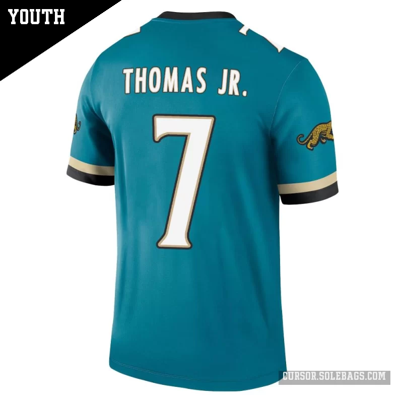 Give young fans a lightweight way to support the Jaguars with this Youth Jacksonville Jaguars #7 Brian Thomas Jr. Teal Legend Prowler Throwback Jersey. Soft, easy to move in, and full of team pride, it's perfect for active kids on game day and beyond.