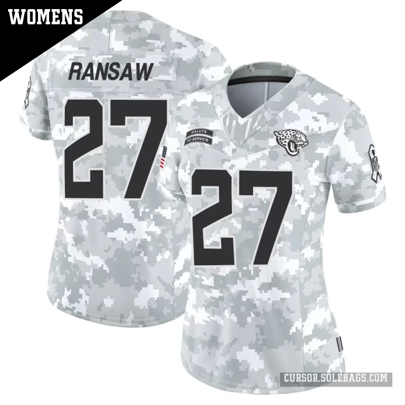 - Women's Jacksonville Jaguars #27 Caleb Ransaw Arctic Camo Limited 2024 Salute to Service Jersey