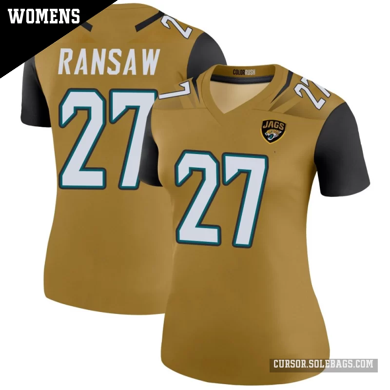 - Women's Jacksonville Jaguars #27 Caleb Ransaw Gold Legend Color Rush Bold Jersey