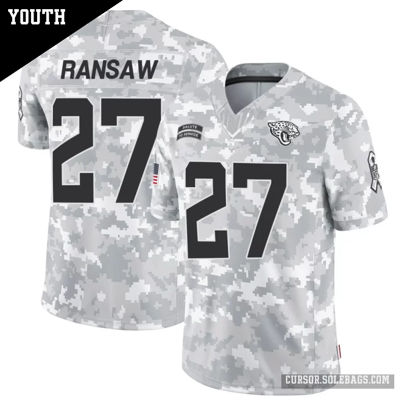 - Youth Jacksonville Jaguars #27 Caleb Ransaw Arctic Camo Limited 2024 Salute to Service Jersey