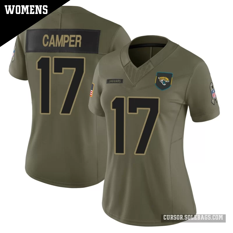 - Women's Jacksonville Jaguars #17 Cam Camper Olive Limited 2025 Salute to Service Jersey