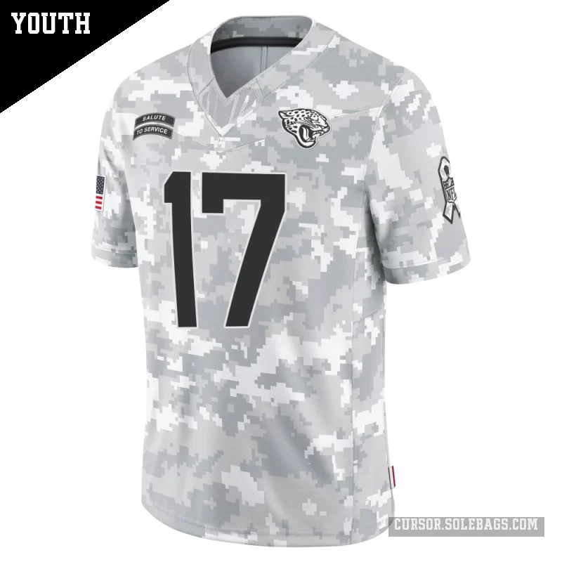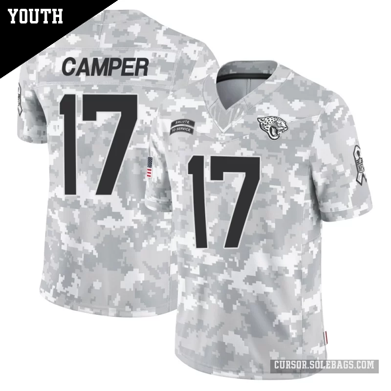 - Youth Jacksonville Jaguars #17 Cam Camper Arctic Camo Limited 2024 Salute to Service Jersey