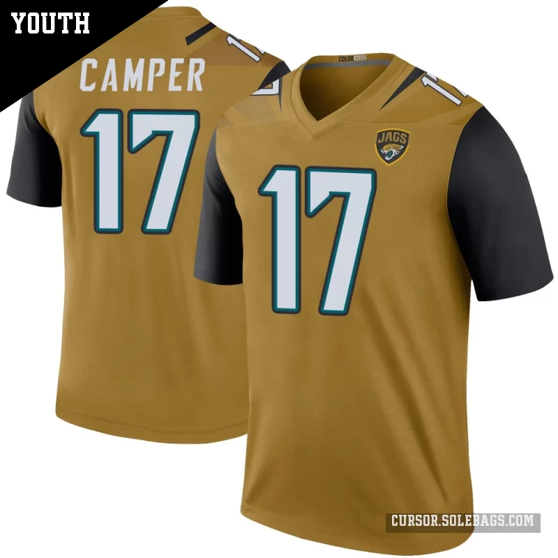 - Youth Jacksonville Jaguars #17 Cam Camper Gold Legend Color Rush Bold Jersey