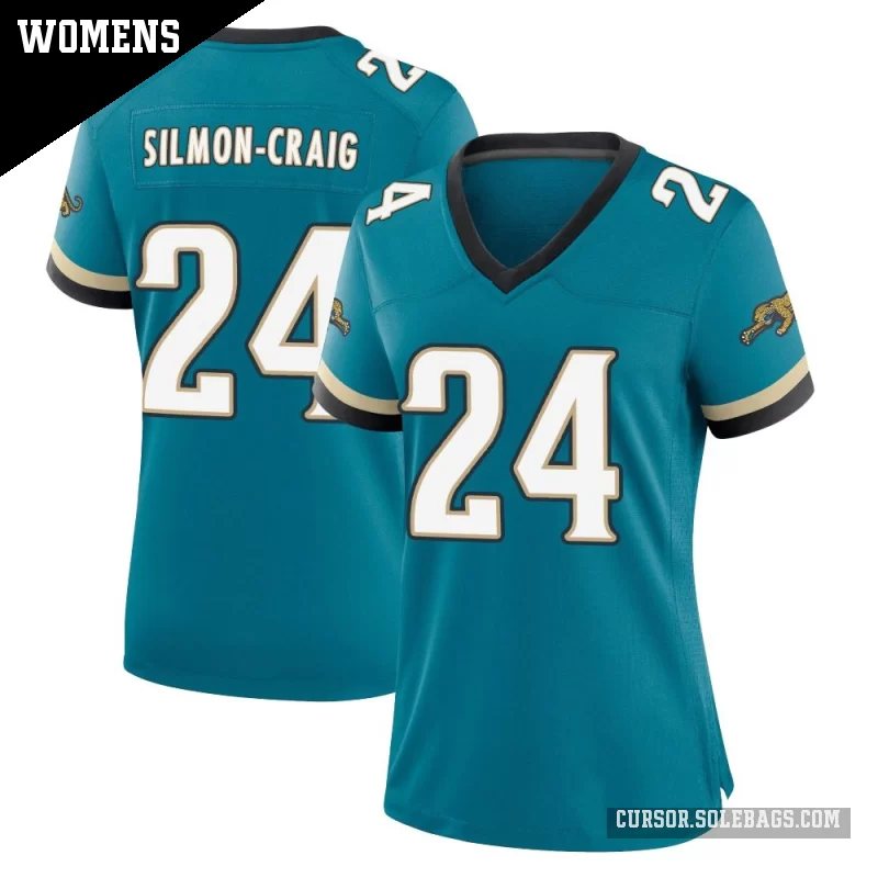 - Women's Jacksonville Jaguars #24 Cam'Ron Silmon-Craig Teal Game Prowler Throwback Jersey
