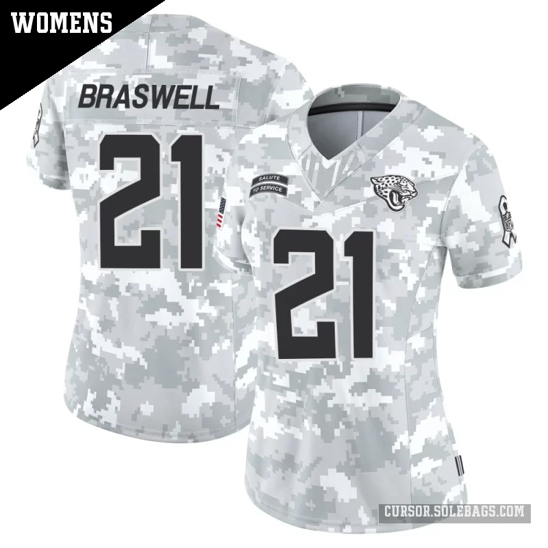 - Women's Jacksonville Jaguars #21 Christian Braswell Arctic Camo Limited 2024 Salute to Service Jersey
