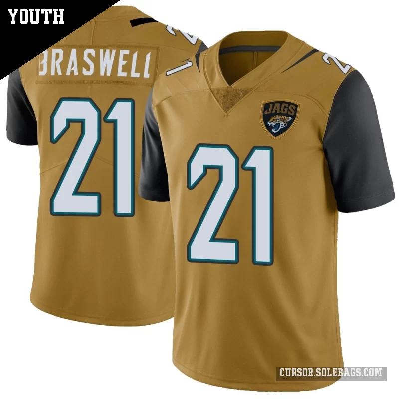 - Youth Jacksonville Jaguars #21 Christian Braswell Gold Limited Color Rush Vapor Untouchable Jersey