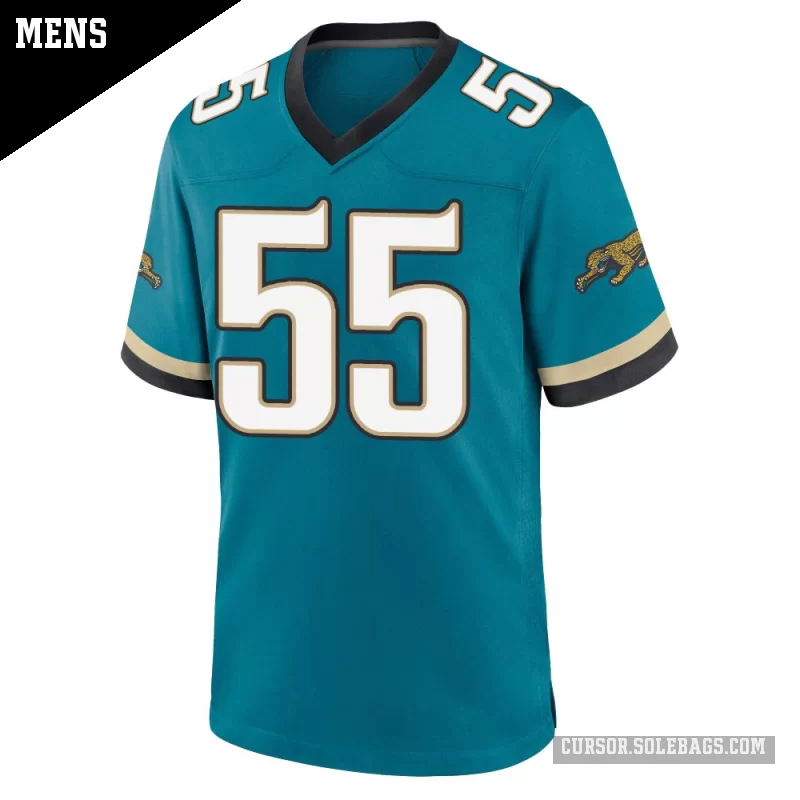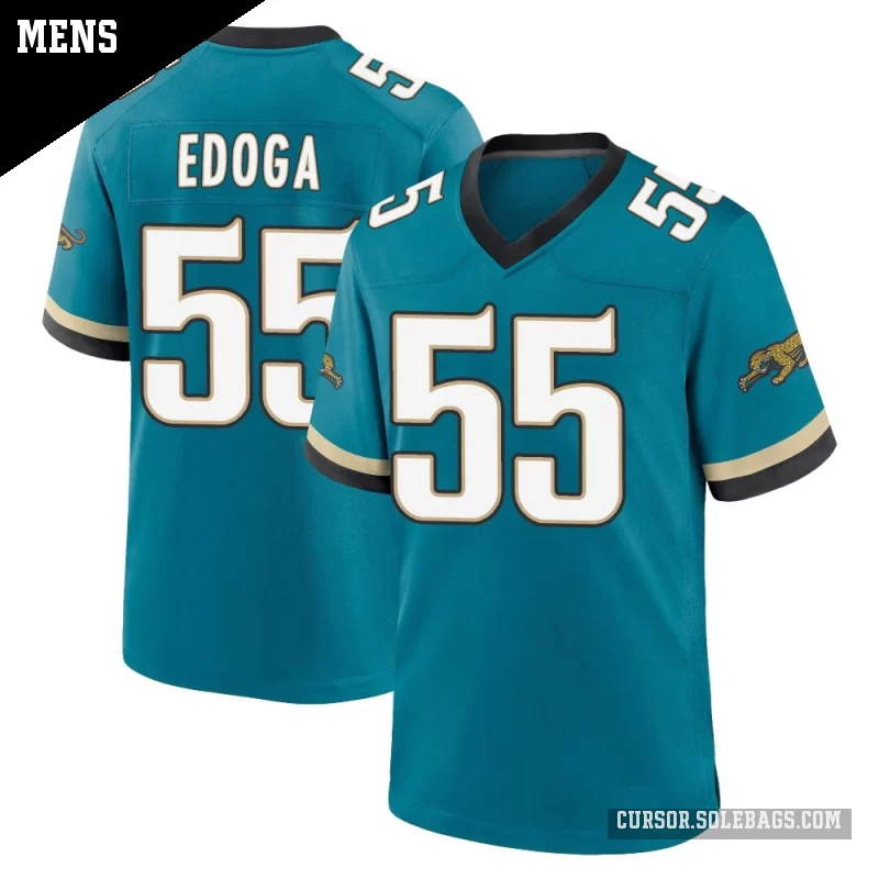 Suit up like a fan favorite in this Men's Jacksonville Jaguars #55 Chuma Edoga Teal Game Prowler Throwback Jersey. Featuring graphics and a comfortable everyday fit, it's perfect for cheering in the stands or watching from home.