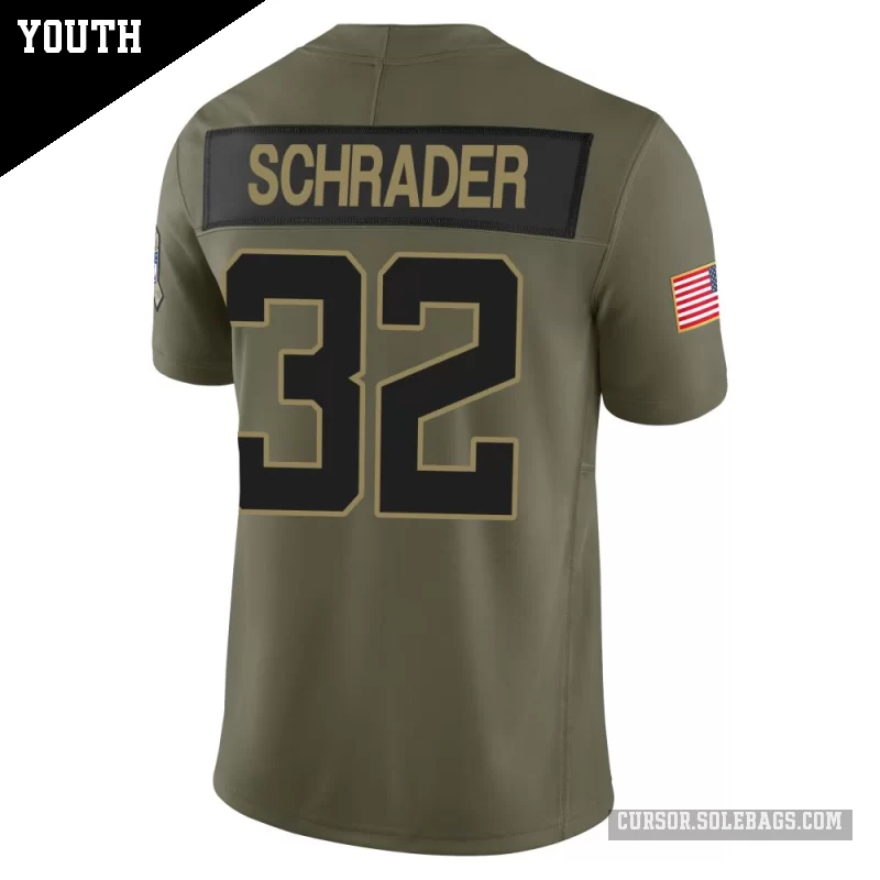- Youth Jacksonville Jaguars #32 Cody Schrader Olive Limited 2025 Salute to Service Jersey