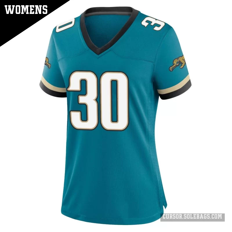 - Women's Jacksonville Jaguars #30 Corey Grant Teal Game Prowler Throwback Jersey