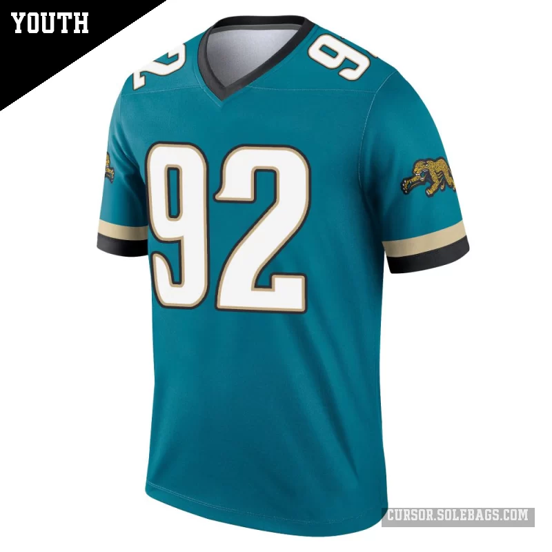Give young fans a lightweight way to support the Jaguars with this Youth Jacksonville Jaguars #92 Danny Striggow Teal Legend Prowler Throwback Jersey. Soft, easy to move in, and full of team pride, it's perfect for active kids on game day and beyond.