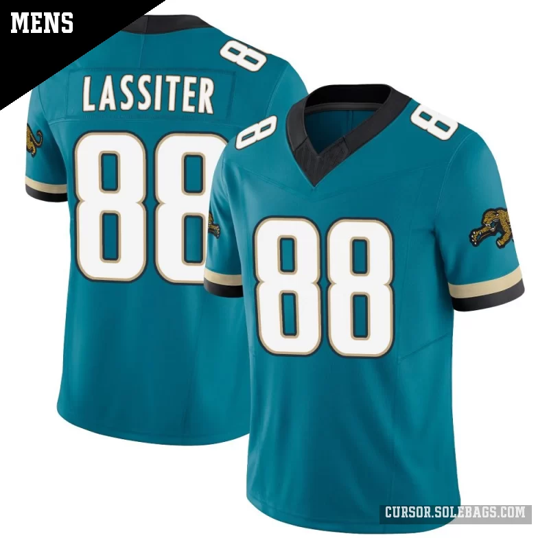 Step up your fan gear with this Men's Jacksonville Jaguars #88 Darius Lassiter Teal Limited Prowler Throwback Vapor F.U.S.E. Jersey. Featuring premium fabrics, stitched details, and a tailored fit, it delivers a more authentic on-field look for serious supporters.