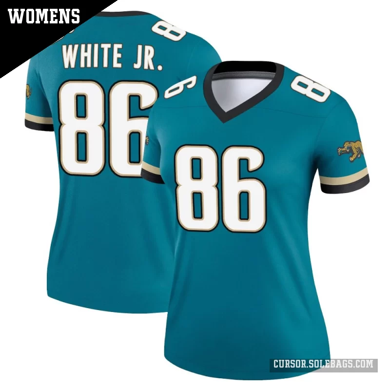 Stay light, cool, and game-ready in this Women's Jacksonville Jaguars #86 David White Jr. Teal Legend Prowler Throwback Jersey. With a comfortable fit and crisp player details, it's ideal for stadium seats, watch parties, or casual outfits.
