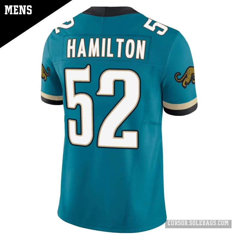 - Men's Jacksonville Jaguars #52 DaVon Hamilton Teal Limited Prowler Throwback Vapor F.U.S.E. Jersey