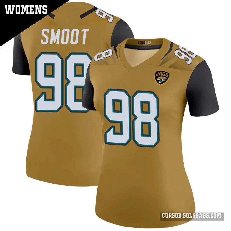 - Women's Jacksonville Jaguars #98 Dawuane Smoot Gold Legend Color Rush Bold Jersey