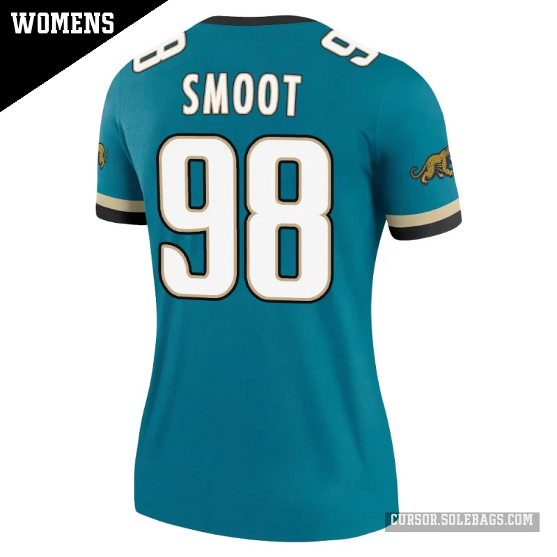 Stay light, cool, and game-ready in this Women's Jacksonville Jaguars #98 Dawuane Smoot Teal Legend Prowler Throwback Jersey. With a comfortable fit and crisp player details, it's ideal for stadium seats, watch parties, or casual outfits.