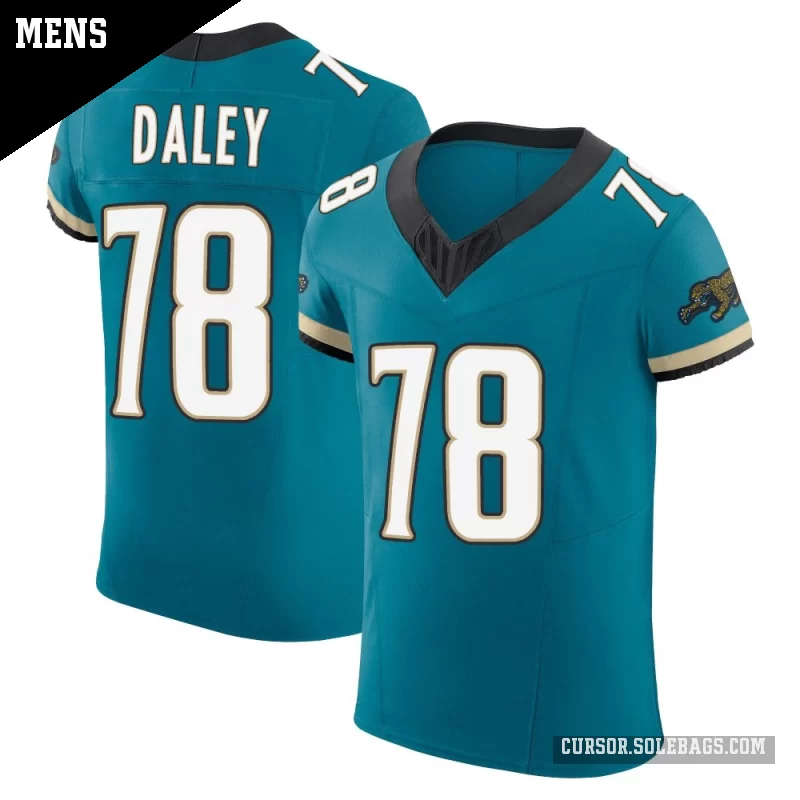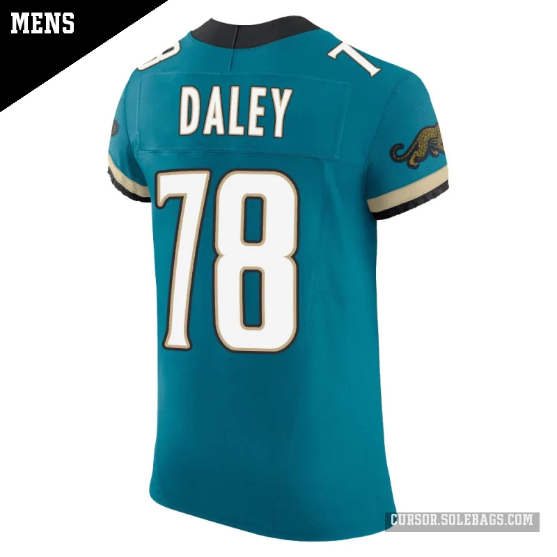 Experience game-day like the pros in this Men's Jacksonville Jaguars #78 Dennis Daley Teal Elite Prowler Throwback Vapor F.U.S.E. Jersey. Built with top-tier materials, advanced ventilation, and authentic on-field details, it's the ultimate choice for dedicated collectors and superfans.