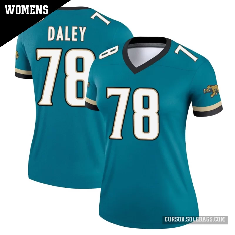 Stay light, cool, and game-ready in this Women's Jacksonville Jaguars #78 Dennis Daley Teal Legend Prowler Throwback Jersey. With a comfortable fit and crisp player details, it's ideal for stadium seats, watch parties, or casual outfits.