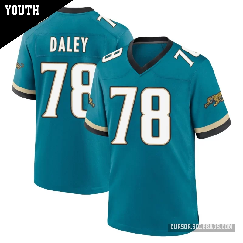 Let young fans feel part of the team with this Youth Jacksonville Jaguars #78 Dennis Daley Teal Game Prowler Throwback Jersey. Durable, comfortable, and full of team spirit, it's great for school, backyard play, and every big game.