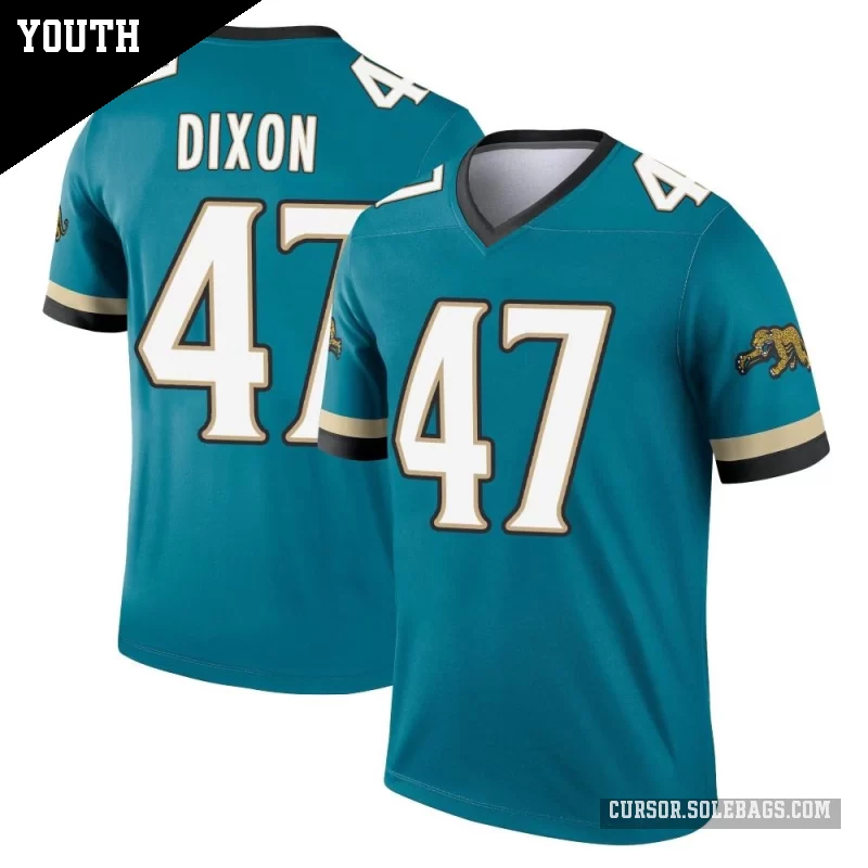- Youth Jacksonville Jaguars #47 De'Shaan Dixon Teal Legend Prowler Throwback Jersey
