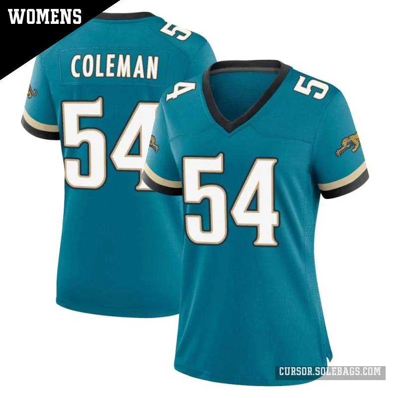 - Women's Jacksonville Jaguars #54 DJ Coleman Teal Game Prowler Throwback Jersey