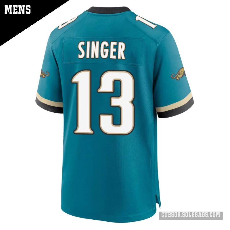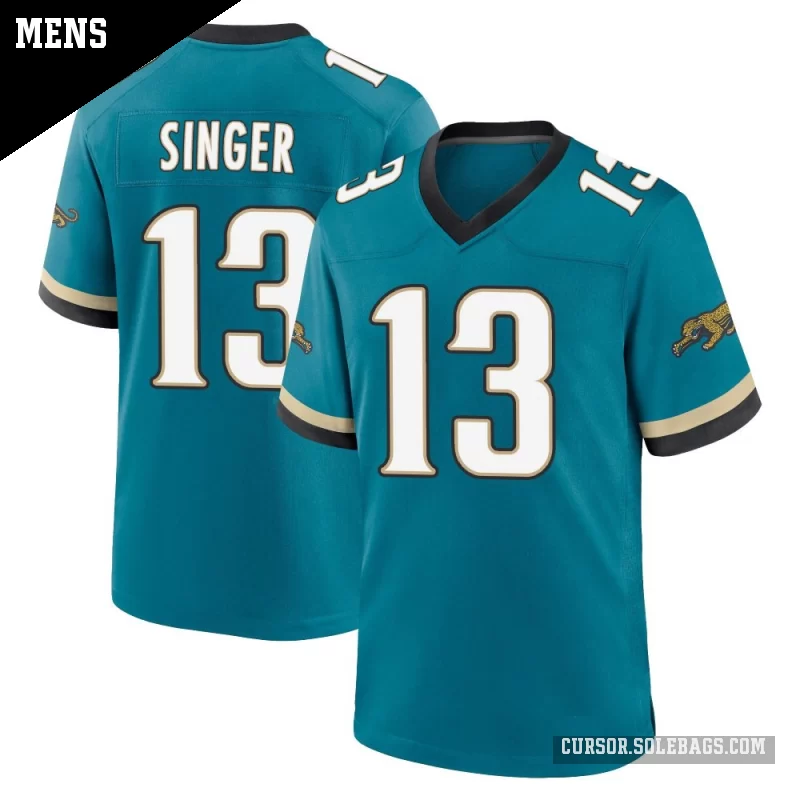 Suit up like a fan favorite in this Men's Jacksonville Jaguars #13 Dorian Singer Teal Game Prowler Throwback Jersey. Featuring graphics and a comfortable everyday fit, it's perfect for cheering in the stands or watching from home.