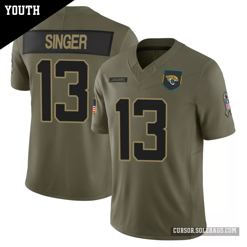 - Youth Jacksonville Jaguars #13 Dorian Singer Olive Limited 2025 Salute to Service Jersey