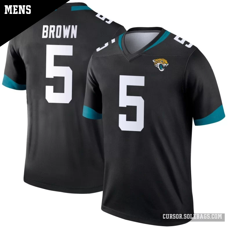 Keep cool and comfortable while backing the Jacksonville Jaguars in this Men's Jacksonville Jaguars #5 Dyami Brown Black Legend Jersey. Lightweight, breathable fabric and bold player graphics make it perfect for warmer game days and everyday wear.