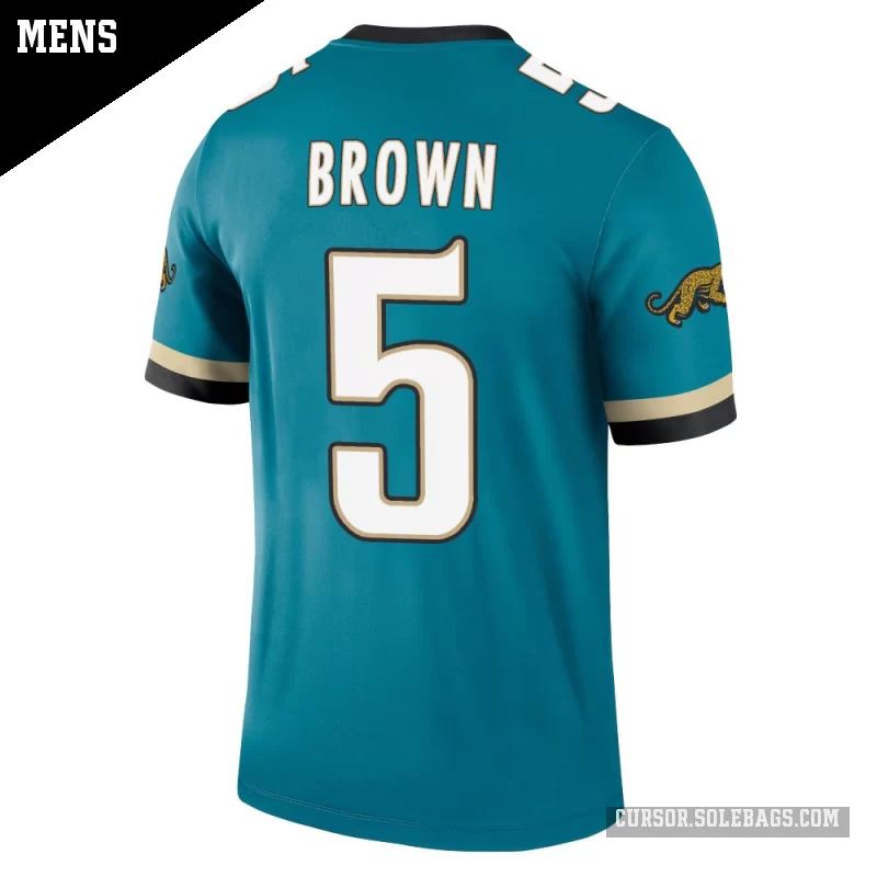 Keep cool and comfortable while backing the Jacksonville Jaguars in this Men's Jacksonville Jaguars #5 Dyami Brown Teal Legend Prowler Throwback Jersey. Lightweight, breathable fabric and bold player graphics make it perfect for warmer game days and everyday wear.