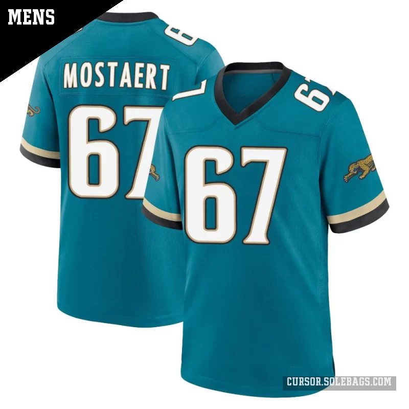 - Men's Jacksonville Jaguars #67 Eli Mostaert Teal Game Prowler Throwback Jersey